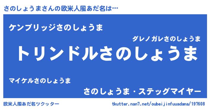 | 肩書あだ名 | 『さのしょうま大尉』『さのしょうま閣下』 |