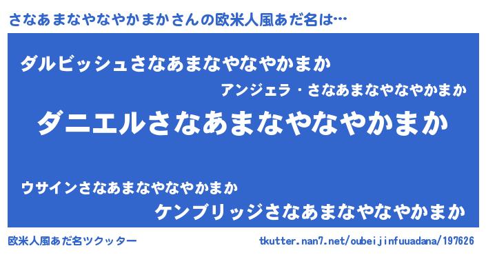 | 料理風あだ名 | 『さなあまなやなやかまかのトマト煮』 |