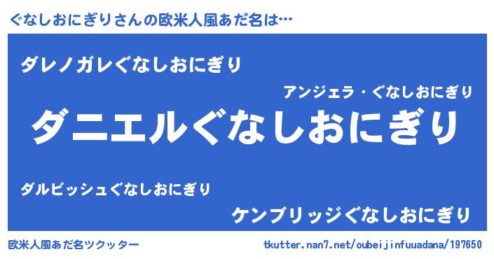 | 女子向けラノベタイトル風あだ名 | 『死神ぐなしおにぎりの再婚』 |