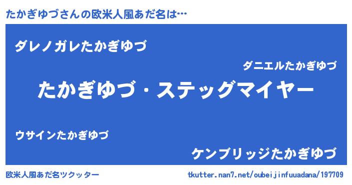 | ヒーロー風カッコイイあだ名 | 『仮面タカダー』『究極戦士タカギユヅ』 |