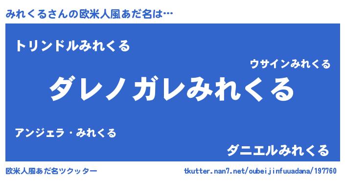 | 意味不明あだ名 | 『住所不定無職みれくる(85歳)』 |