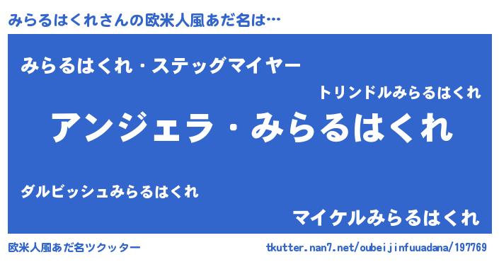 | ヘコむあだ名 | 『みらにー』『みらるはくれ(笑)』 |
