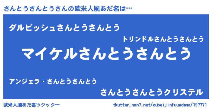 | 男性向けラノベタイトル風あだ名 | 『サントウサントウアートオンライン』 |