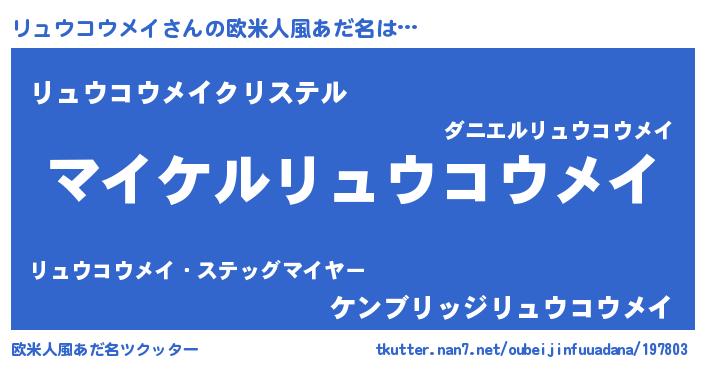 | ヒーロー風カッコイイあだ名 | 『スーパーリュウコウメイ』 |