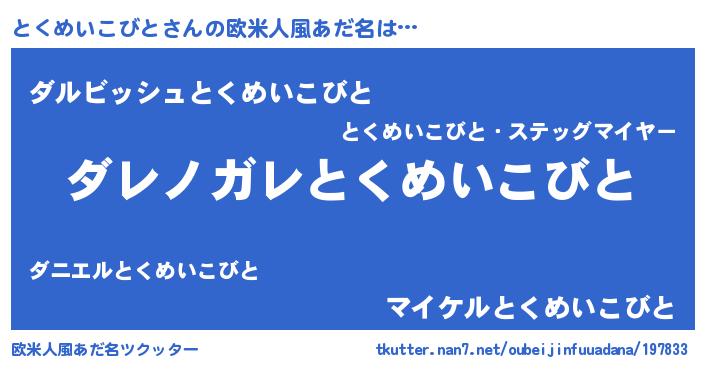 | ファンタジー風あだ名 | 『ヴァルトクーナ』『トクディッシュ』 |
