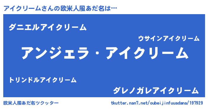 | 男性向けラノベタイトル風あだ名 | 『アイクリームに滅ぼされるだけの簡単なお仕事です』 |