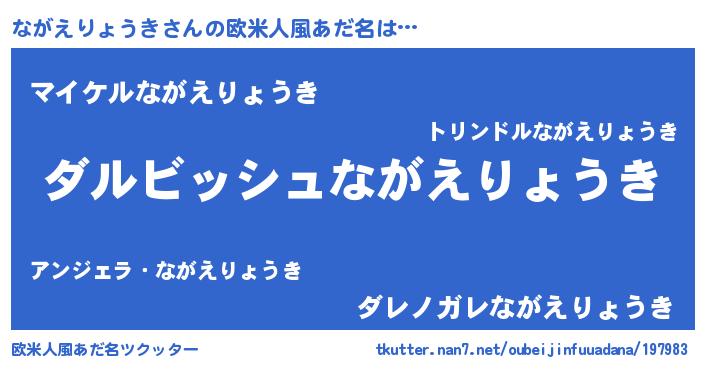 | 男性向けラノベタイトル風あだ名 | 『ながえりょうきという概念が存在しない退屈な世界 』 |