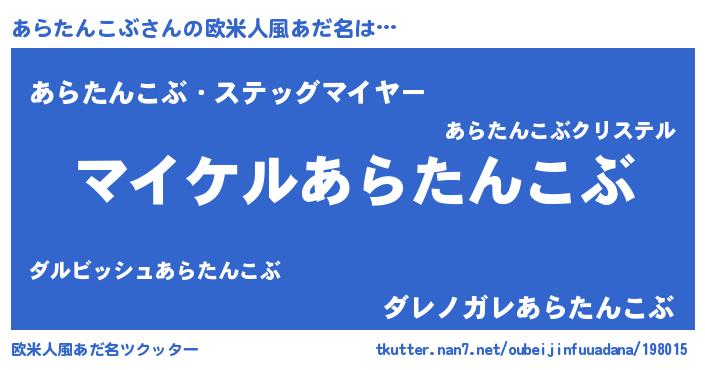 | 男性向けラノベタイトル風あだ名 | 『アラタンコブアートオンライン』 |