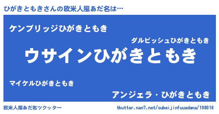 | 女子向けラノベタイトル風あだ名 | 『ひがきともきの卵を拾いまして』 |