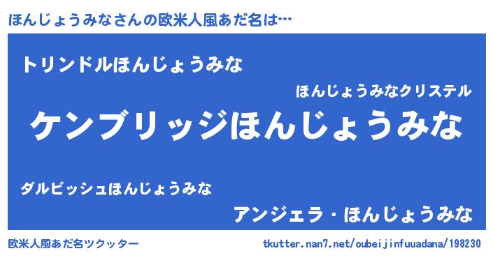 | 男性向けラノベタイトル風あだ名 | 『魔法科高校のほんじょうみな』 |