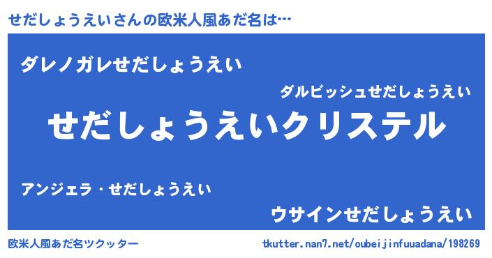 | 意味不明あだ名 | 『せだしょうえいフォーエバー』 |
