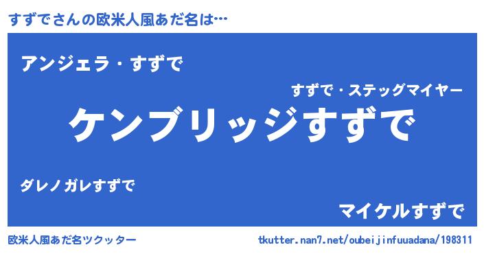 | 男性向けラノベタイトル風あだ名 | 『魔法科高校のすずで』『緋弾のスズデ』 |