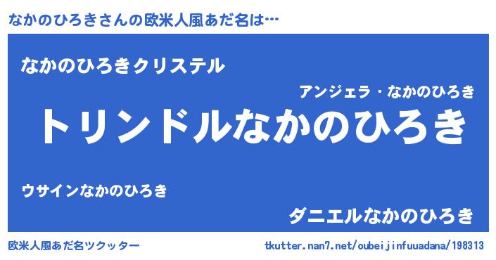 | 男性向けラノベタイトル風あだ名 | 『なかのひろき~年齢イコール彼女いない歴の魔法使い~』 |