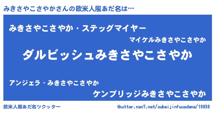 | 男性向けラノベタイトル風あだ名 | 『みきさやこさやかという概念が存在しない退屈な世界 』 |