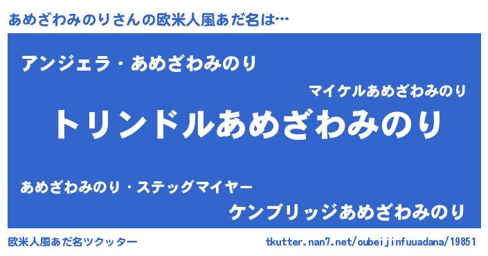 | 男性向けラノベタイトル風あだ名 | 『アメザワミノリスレイヤー』 |