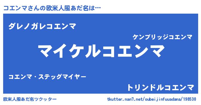 | 女子向けラノベタイトル風あだ名 | 『コエンマ姫と円卓の騎士』 |
