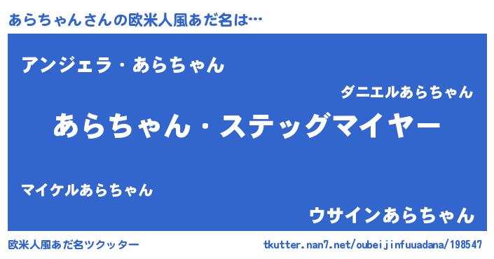 | ヒーロー風カッコイイあだ名 | 『幻影騎士アラ』『正義の使者あらちゃん』 |