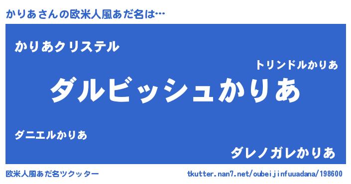 | 意味不明あだ名 | 『永久保存かりあ』『かりあフォーエバー』 |