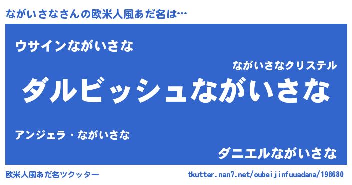 | ヘコむあだ名 | 『ながいさな(震え声)』『ながぷりん』 |