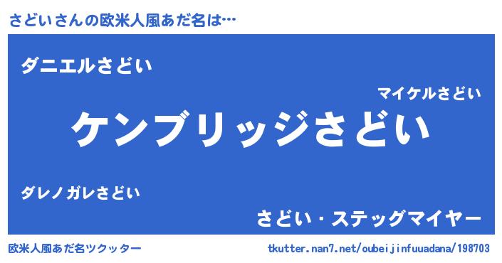 | 男性向けラノベタイトル風あだ名 | 『Re:さどいから始める異世界生活』 |