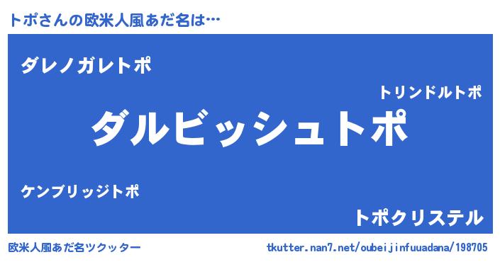 | 意味不明あだ名 | 『永久保存トポ』『住所不定無職トポ(7歳)』 |