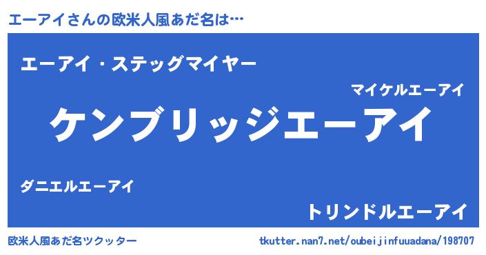 | 意味不明あだ名 | 『自称エーアイ』『めかぶ科エーアイ属』 |