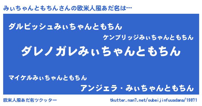 | 男性向けラノベタイトル風あだ名 | 『この素晴らしい世界にみぃちゃんともちんを!』 |