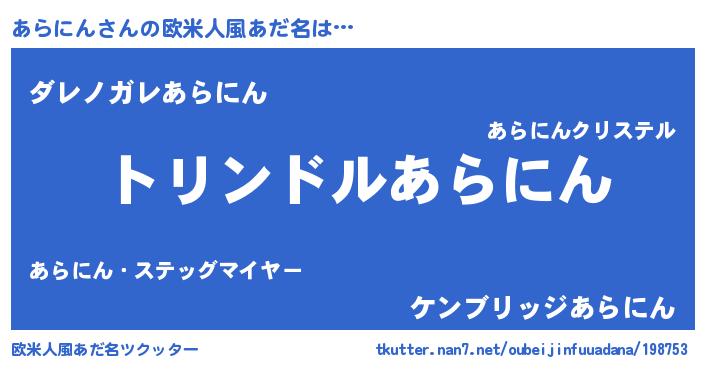 | 意味不明あだ名 | 『しいたけ科あらにん属』『自称あらにん』 |