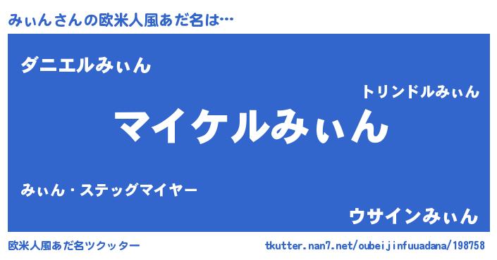 | 男性向けラノベタイトル風あだ名 | 『ミィンアートオンライン』 |