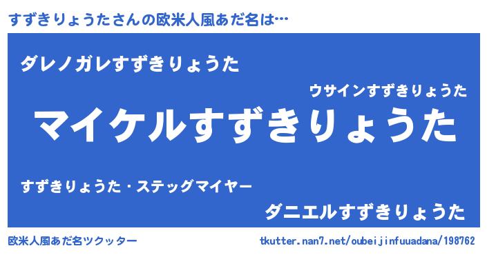| 胡散臭い通販商品みたいなあだ名 | 『必ず成功する霊験あらたかなお札…その名も「すずきりょうた」』 |