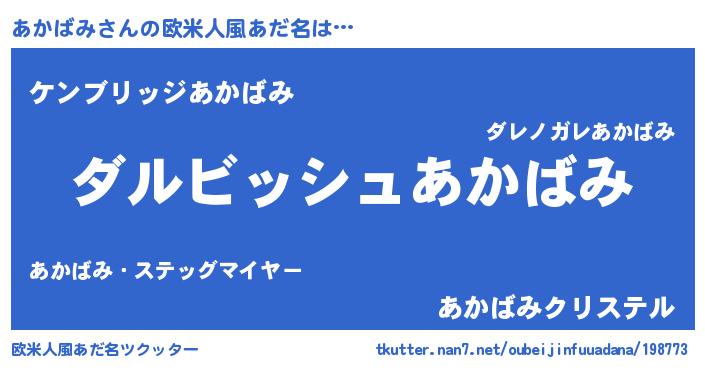 | 意味不明あだ名 | 『永久保存あかばみ』『自称あかばみ』 |