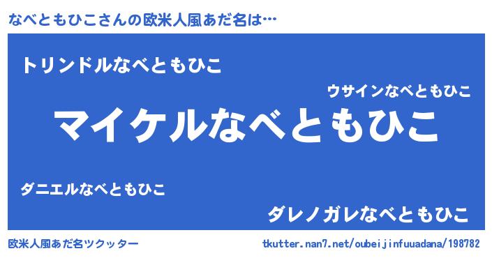 | 男性向けラノベタイトル風あだ名 | 『ナベトモヒコアートオンライン』 |
