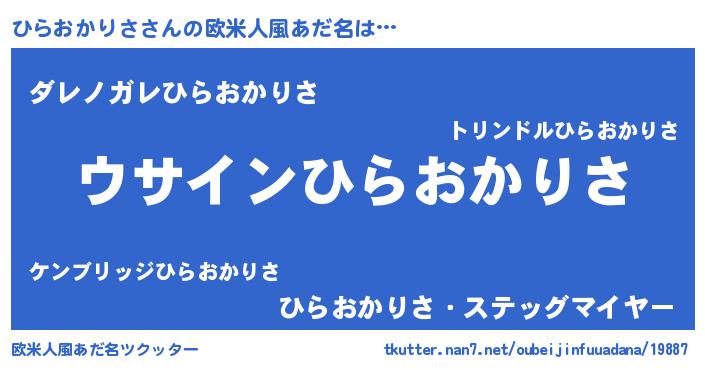 | 男性向けラノベタイトル風あだ名 | 『ひらおかりさの嫁は女の子じゃないと思った?』 |