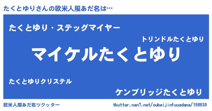 | 意味不明あだ名 | 『ペロリンたくとゆり』『自称たくとゆり』 |