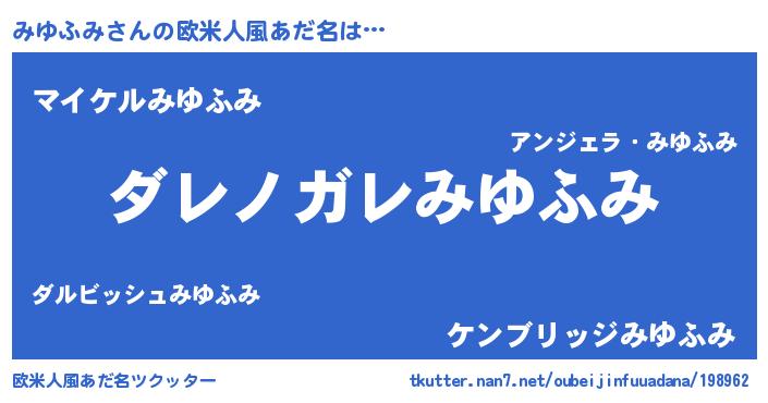 女子向けラノベタイトル風あだ名 | 『乙女ゲームの破滅フラグしかない悪役みゆふみに転生してしまった…』 |