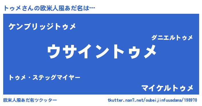 | 意味不明あだ名 | 『とにかく怪しいトゥメ』『自称トゥメ』 |