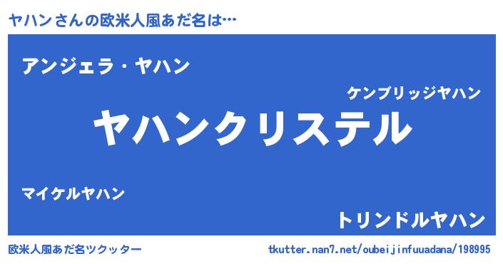 | 女子向けラノベタイトル風あだ名 | 『ヤハンの雑貨屋さん』『闇のヤハン』 |