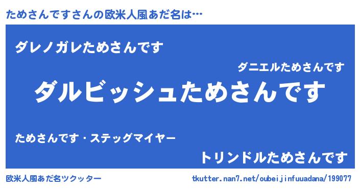 | 男性向けラノベタイトル風あだ名 | 『ためさんですという概念が存在しない退屈な世界 』 |