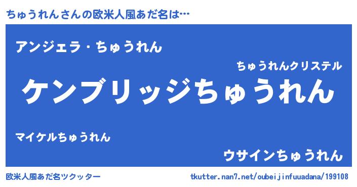 | ヘコむあだ名 | 『ちゅを』『なまこ酢』『ちゅもー』 |