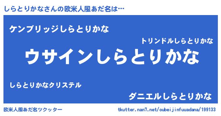 | 男性向けラノベタイトル風あだ名 | 『ダンジョンにしらとりかなを求めるのは間違っているだろうか』 |