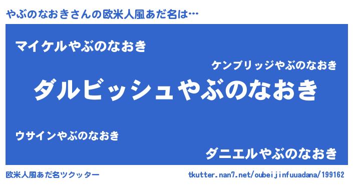 | 胡散臭い通販商品みたいなあだ名 | 『来世でも幸せになれる水素水…その名も「やぶのなおき」』 |
