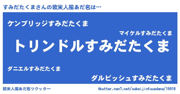 | ヘコむあだ名 | 『すみだたくま(小並感)』『すみっふぃ~』 |
