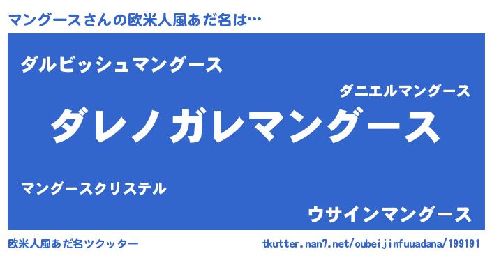 | 意味不明あだ名 | 『住所不定無職マングース(93歳)』 |