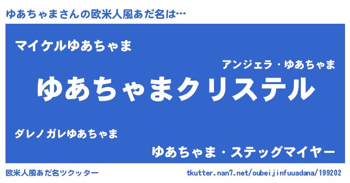 | 男性向けラノベタイトル風あだ名 | 『やはりゆあちゃまの青春ラブコメはまちがっている 』 |