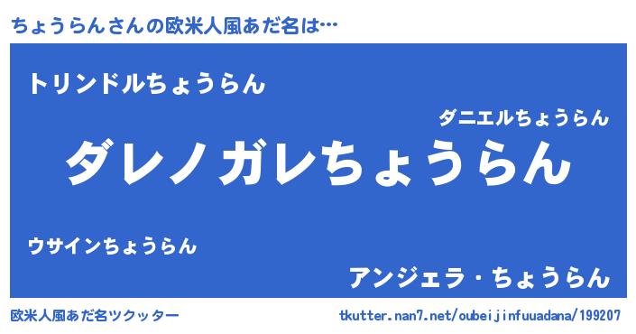 | 意味不明あだ名 | 『住所不定無職ちょうらん(56歳)』 |