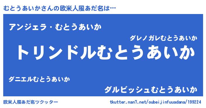 | 男性向けラノベタイトル風あだ名 | 『むとうあいか~年齢イコール彼女いない歴の魔法使い~』 |