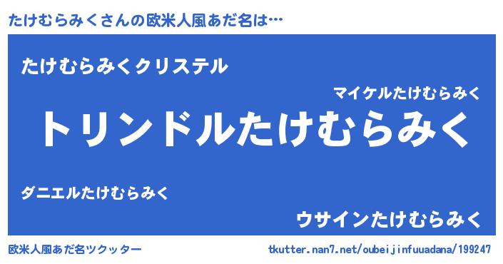 | 料理風あだ名 | 『たけむらみくごはん』 |