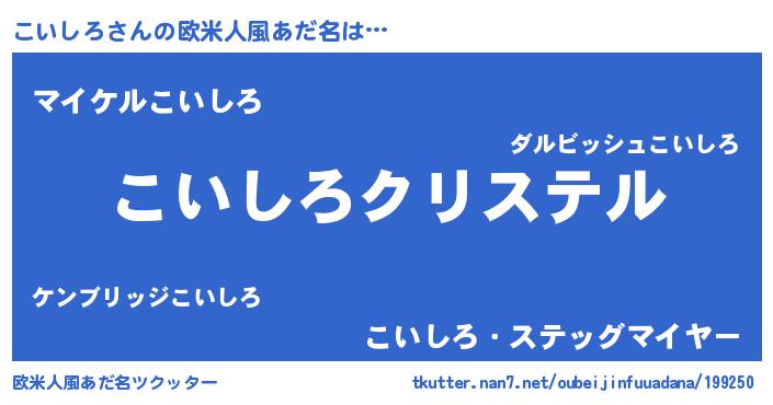 | ファンタジー風あだ名 | 『エターナルコイシロー』『コイフェル』 |
