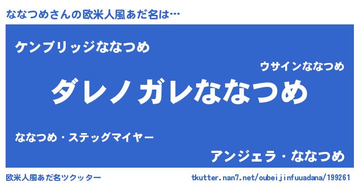 | ヘコむあだ名 | 『ななぷりん』『ななつめ(苦笑)』 |