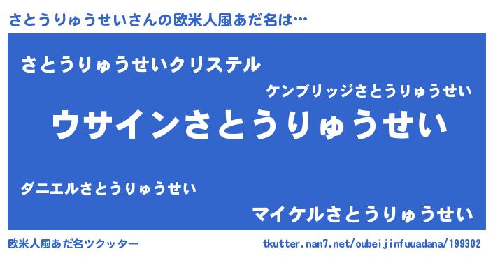 | ポケモン風あだ名 | 『ヒサトウリュウセイ』『サトウダネ』 |